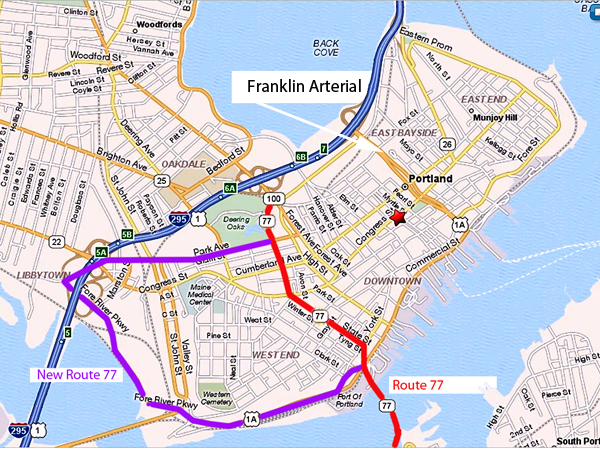 then along the waterfront on Commercial St. to the Casco Bay Bridge,