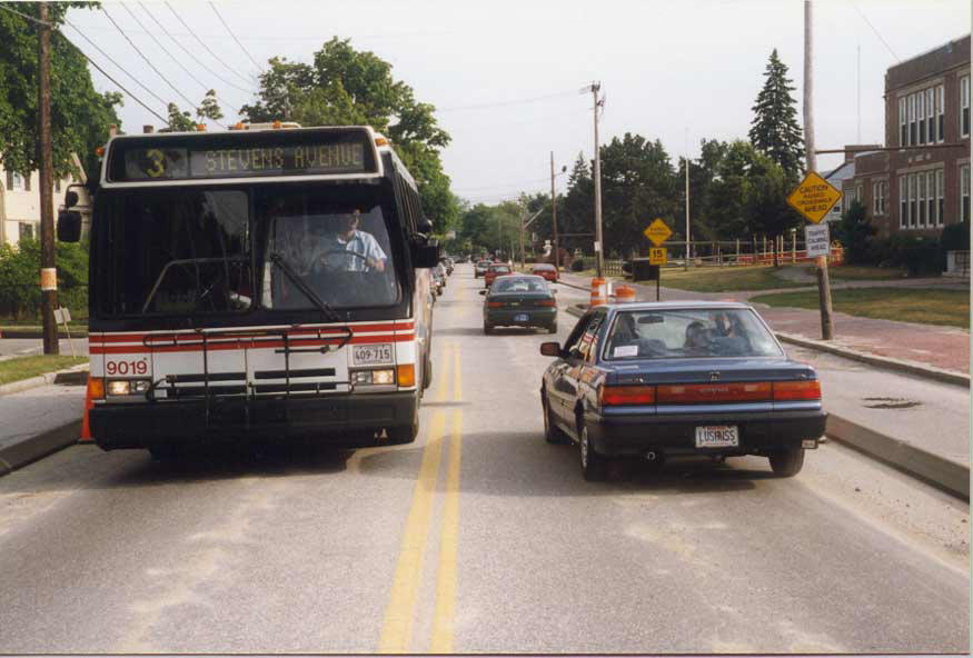 Stevens Avenue Project : Installation Just after the first two humps were installed in 1996 the DCNA had a small coffee-and-cookie gathering at Burbank library to celebrate the construction of the first two humps at Deering High and Longfellow. This meeting I actually found out about in advance, and went to. People there were very happy, smiling and cheery, very pleased with the results of their efforts.... at least until I started asking questions about the 6.5 second delay, the crossing problem, the traffic data, the nonexistent speeding problem, etc. They had no idea that the report stated what it did. They had not read it. Paula Craighead, the hostess, said that perhaps they should have me come to any future meetings so they would be able to fine-tune their efforts and eliminate the trouble spots! I couldn't believe it, and left totally disgusted. I continued to ask anybody I met over the next two years if they had read the report about the Stevens Ave. project . Nobody, other than Mr.'s. Gorrill and Hedricks, the engineers at DeLuca-Hoffman who wrote it, and myself, had ever read the report. NOBODY. I couldn't believe it; it was astounding. All those people, the Deering Center Neighborhood Association (DCNA), the city officials involved, the federal and state state officials involved, the construction officials involved, no-one had read it. This sounds unbelievable, but it is the case. In talking to project supporters, I understood that they THOUGHT they knew what the report had said, but they actually did not. They were proceeding under mistaken circumstances. Worse yet, when their inaccuracies were pointed out to them, they would all just kind of shrug and smugly say "Well...WE think it needs to be done!" and continue on their merry way. The whole project was based upon the erroneous ideas of the citizens involved, with city council complicity. The study refuted all of their conclusions and justifications for "calming" traffic on Stevens Avenue, and they didn't care. The project was going to continue no matter what the facts said. It was like trying to stop a glacier.