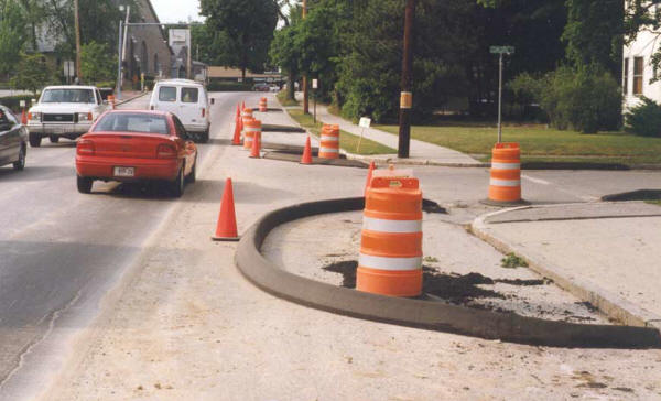 Left: Lincoln Middle School, looking North. Notice the hits on the curbing within hours of its installation.