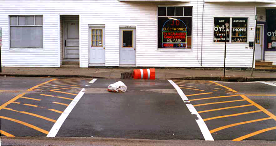 managers office. They're probably in Jimmy Hoffa's coat pocket by now. PORTLAND CITY COUNCILThe public safety committee at the time of the project’s start was comprised of Charles Harlow, Karen Geraghty, and Jack Dawson. They had an illegal meeting the day after the council meeting at a restaurant at Northgate Plaza to hash out what kind of plan to present to the Council. Dawson was holding out for complete removal of the humps. Geraghty was going along with Harlow in keeping the humps, adding 6 more, plus a raised speed table at the intersection of Pleasant and Stevens, along with more marked crosswalks, flashing signs to tell motorists to stop for pedestrians in crosswalks, and orange cans with "speed table " signs on them telling people to stop for pedestrians in the crosswalks. The meeting was illegal because under Maine law there has to be 2-week public notice of any meeting, it has to be open to the public, and minutes have to be taken. None of that was done. Harlow was leaving town for a while, and had to keep the ball rolling. This situation actually made the local paper, which complained about being left out of the action. The asphalt curbing, chicanes, and medians were removed just a month after their installation. Even the most rabid proponents of the project realized they had a public relations disaster on their hands, and thus supported the removal. Paula Craighead, head of the Stevens Avenue Advisory Committee (SAAC), the woman who started the whole fiasco, bailed on DPWs William Bray just two weeks into the installation process, leaving him twisting in the wind. Another council meeting was held, and the "alternate" proposal was voted in. This was the same disastrous plan as originally conceived, minus the unpopular asphalt curbing. Once again the Democrats voted for the project, the Republicans against it. TRAFFIC COUNTING AND DOCUMENTATIONTraffic surveys were done in April and May of 1998, again by Deluca-Hoffman. It was first done the last week in April, then again, on the same day as the last traffic count in 1997, May 8, so as to replicate the dates conditions. In all three cases the weather was the same: clear and dry. I